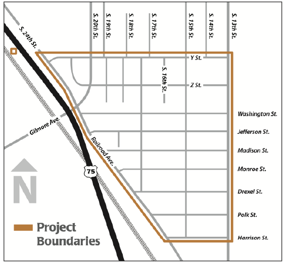 Secondary objectives include completing local sewer separation in a portion of the neighborhood east of Railroad Avenue, south of Washington Street, west of 13th Street and north of Harrison Street. Sewer separation in this area is necessary to ensure that no combined sewer connections remain connected to the South Barrel.